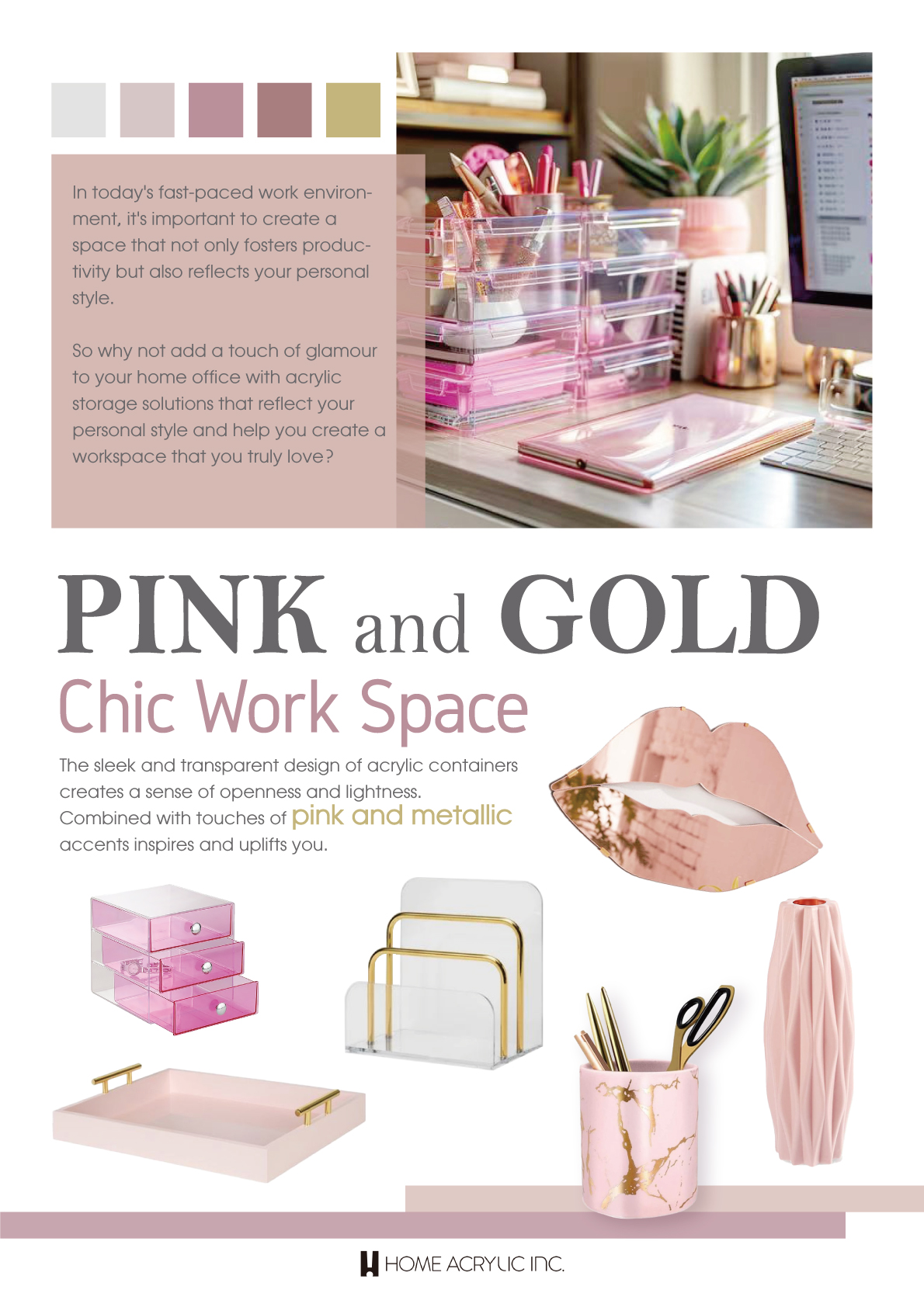 Chic Work Space,The sleek and transparent,design of acrylic containers creates a sense of openness and lightness.